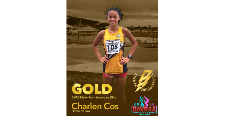 Nakuha ni Charlen Cos gikan sa lungsod sa Maragusan ang pinakaunang bulawan sa Davao Region Athletic Association